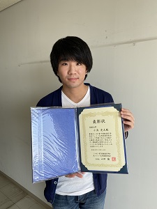 総合理工学部機械・電気電子工学科の小具亮太さん(伊藤・張研究室)が、令和4年10月にオンライン開催された電子情報通信学会光ファイバ応用技術研究会ポスター講演において、「高速波長掃引レーザを用いた光周波数領域リフレクトメトリ(OFDR)による動的ひずみ計測」についての研究発表を行い、その発表に対して学生ポスター奨励賞が授与されました。