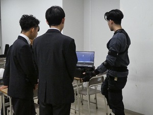 2025年4月に現在の7学科から総合理工学科1学科へ再編される総合理工学部のカリキュラム等をご案内し,数理データサイエンス・IT・デジタル分野の福祉情報工学に関する研究に触れていただきました(担当: 廣冨哲也教授)。大学院生や学部生によるデモンストレーションでは,生徒さんとの活発な交流が見られました。