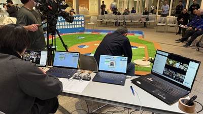 3月1-2日、横浜市役所にてウルトラ・ユニバーサル野球大会が実施されました。これは、総合理工学部 機械・電気電子工学科の伊藤史人助教(実施当時)らが開発したEyeMoTシステムを活用して、重度障がい児が遠隔操作で大きな野球盤を使うイベントです。代表は元NHKアナウンサーの内多勝康さんです。当日は、元プロ野球監督のラミレスさんも参加し、白熱した試合が展開されました。