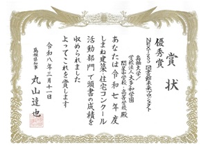 令和7年度しまね建築・住宅コンクール活動部門において、「NEXT200図書館未来プロジェクト」が「優秀賞」を受賞しました(2026.03.11)。