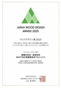 加えて、ウッドデザイン賞 2025(ライフスタイルデザイン部門)も受賞しました(2025.12.10)。ウッドデザイン賞は林野庁等の協賛を得て、一般社団法人日本ウッドデザイン協会が主催するものです。