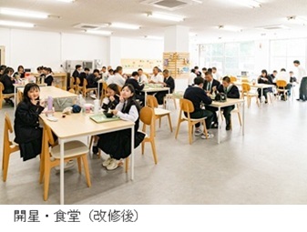 このプロジェクトは、学校法人大多和学園 開星中学校・高等学校の食堂および生徒ラウンジについて、開星の中高生および島根大学生(総合理工学部・自然科学研究科の井上研究室)が協働で設計提案・改修を行なったものです。